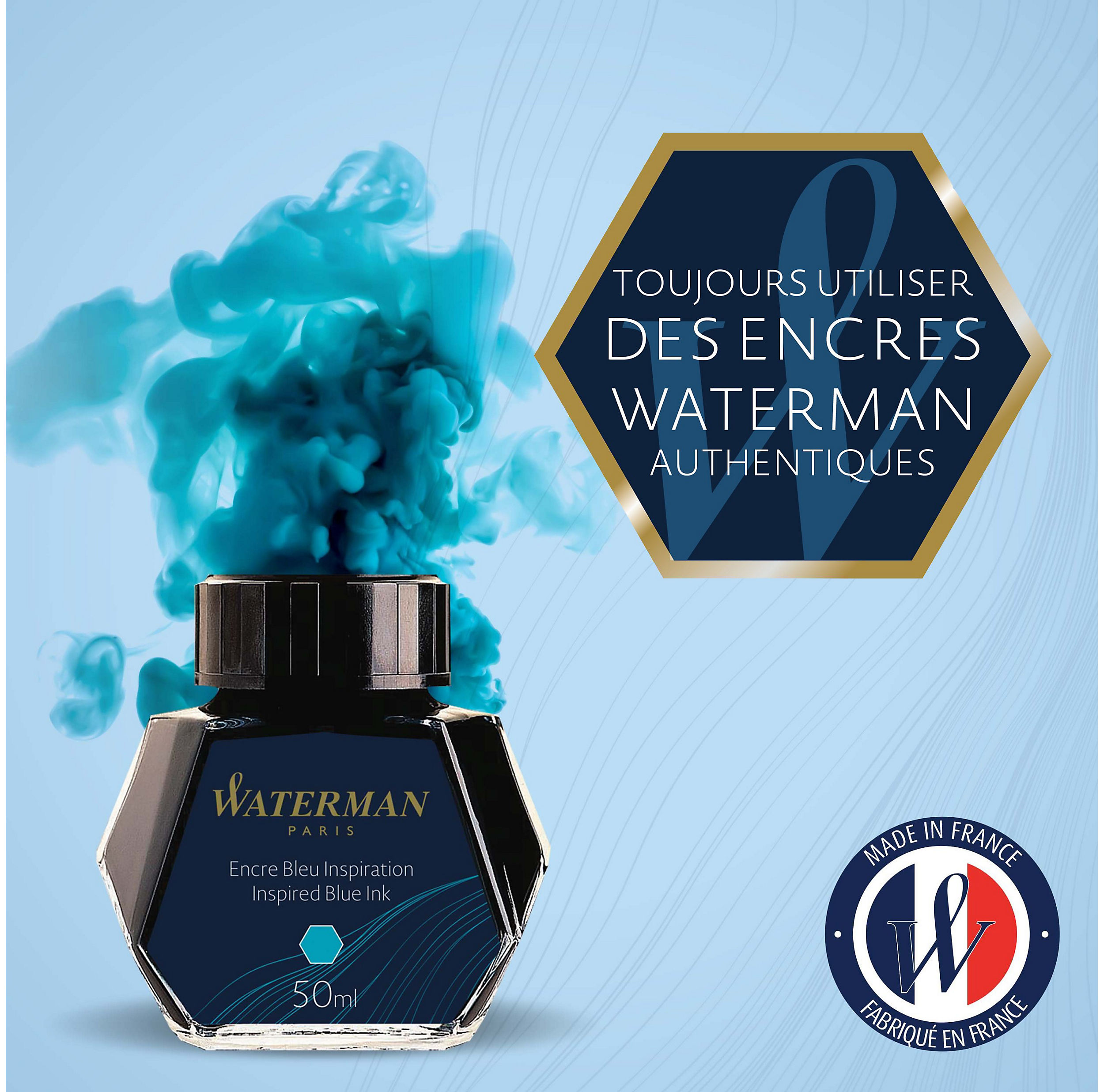 WATERMAN encre pour Stylo plume, couleur Bleu Inspiration, flacon 50 ml Code Produit : S0110810 Code EAN : 3034325106793