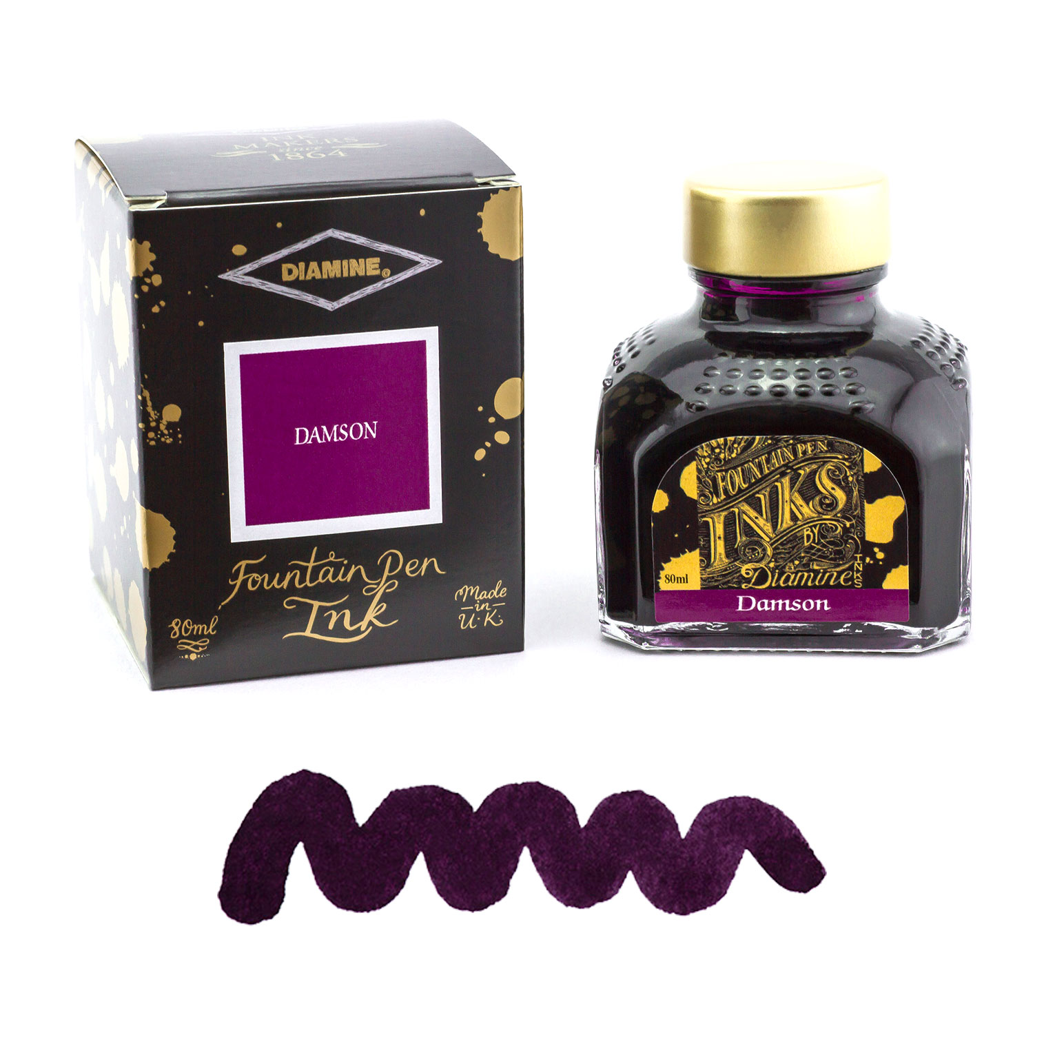 L’encre Diamine Damson 80 ml est une teinte prune profonde et élégante, idéale pour des écrits raffinés. Fluide, à séchage rapide, elle garantit un tracé net et précis.