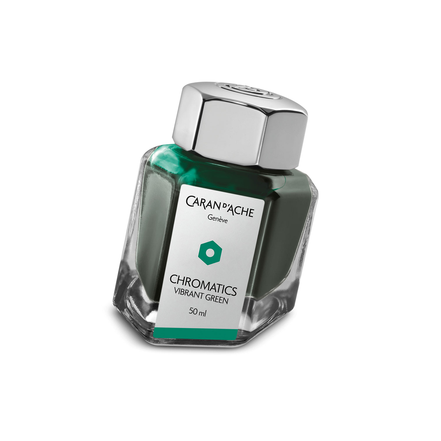 Le Flacon d'encre Caran d'Ache Chromatics - Vibrant Green 50 ml incarne l'excellence du savoir-faire suisse et la passion de l'écriture raffinée.