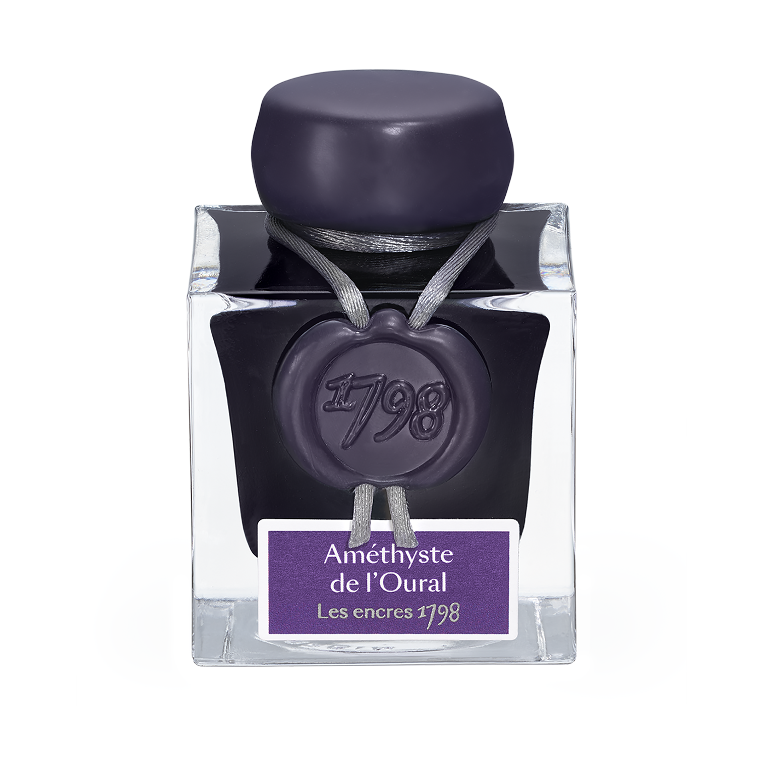 Flacon d’encre Jacques Herbin Améthyste de l’Oural 50 ml – Pailletée Argent. Violet intense illuminé d’étincelles argentées pour un tracé raffiné. Compatible stylos-plume, rollers, plumes de verre et porte-plumes. Flacon artisanal, fabrication française prestigieuse.