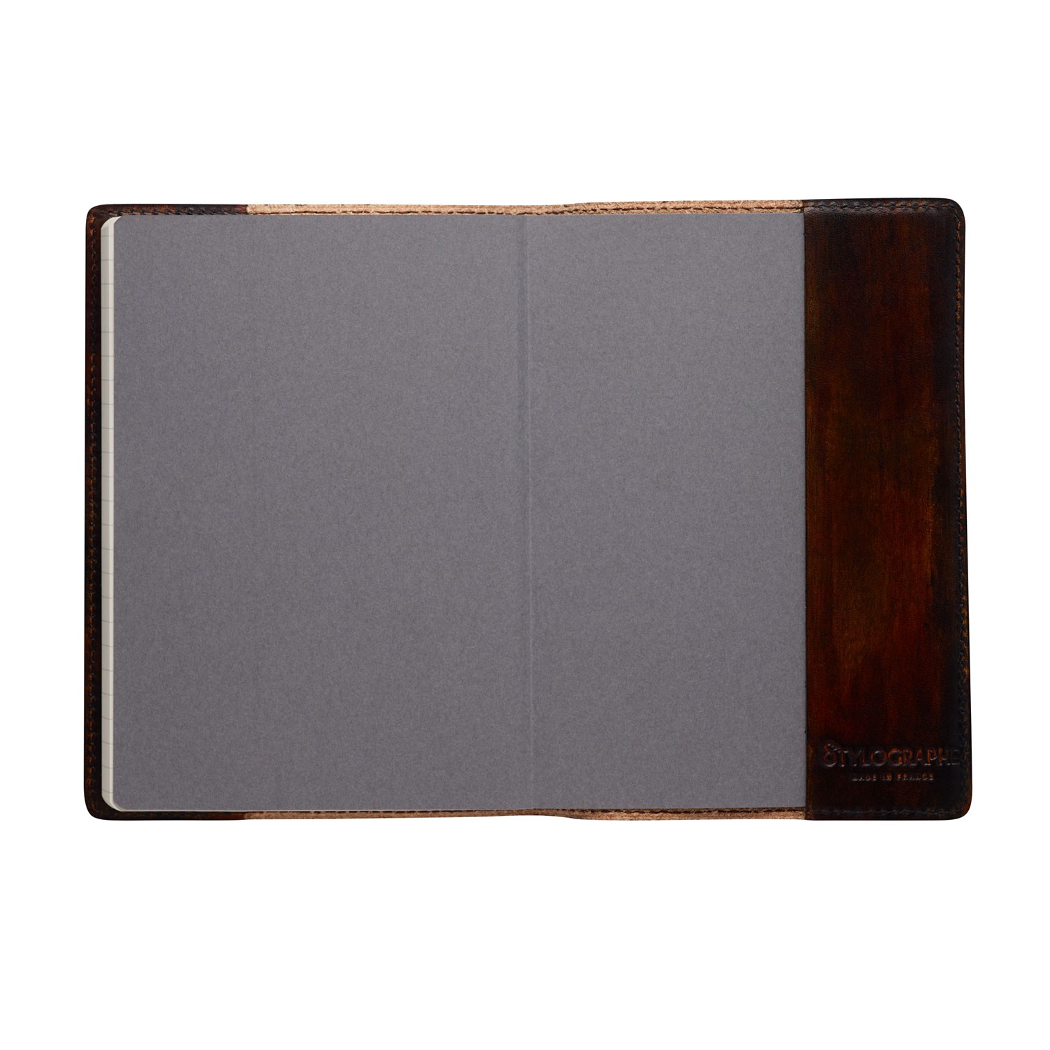 Couverture en cuir de vachette pleine fleur, patiné à la main. Couleur Havane pouvant accueillir un cahier ligné de 160 pages. Papier de haute qualité à la texture douce. Idéal pour l’écriture au stylo-plume.