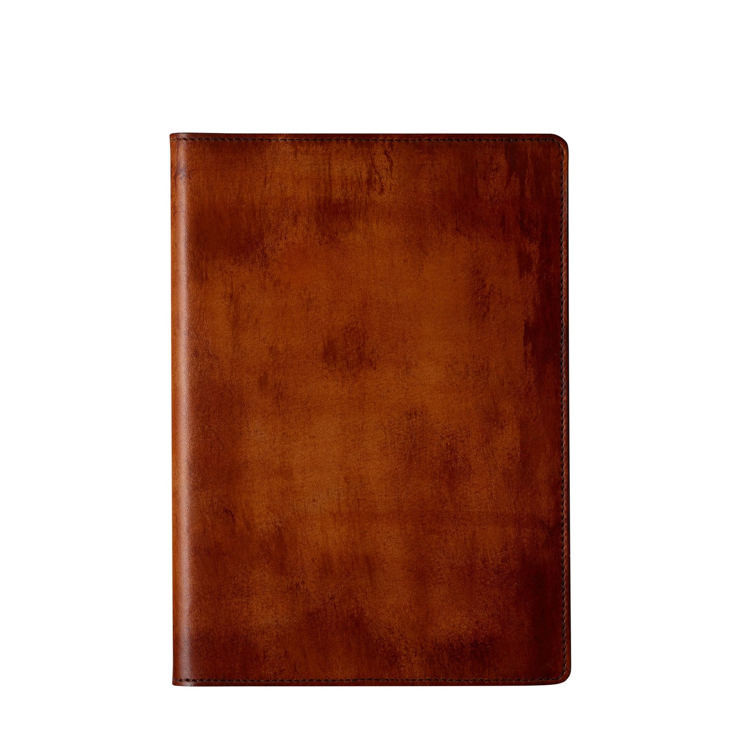 Couverture en cuir de vachette pleine fleur, patiné à la main. Couleur Miel pouvant accueillir un cahier ligné de 160 pages. Papier de haute qualité à la texture douce. Idéal pour l’écriture au stylo-plume.