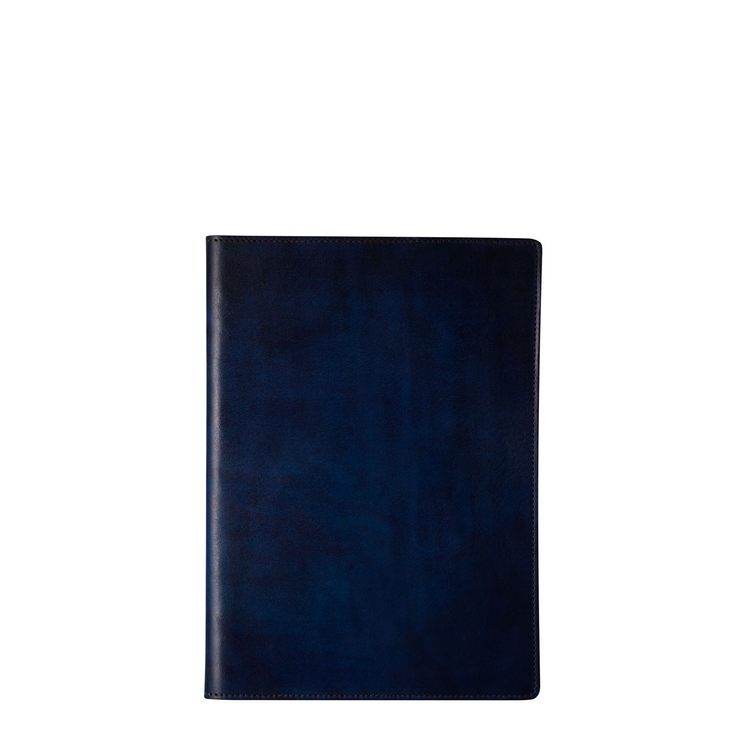 Couverture en cuir de vachette pleine fleur, patiné à la main. Couleur Bleu Marine pouvant accueillir un cahier ligné de 160 pages. Papier de haute qualité à la texture douce. Idéal pour l’écriture au stylo-plume.