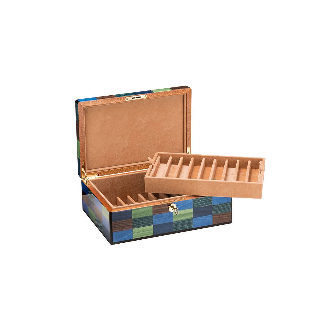 L'esthétisme de ces coffrets " Venezia " fait écho aux légendaires costumes du carnaval de Venise. Une succession de touches de couleurs harmonieusement assemblées, confèrent à ces coffrets un aspect remarquable. Revêtement intérieur en tissu façon alcantara. Emballage: Boîte en carton ondulé avec protections internes.