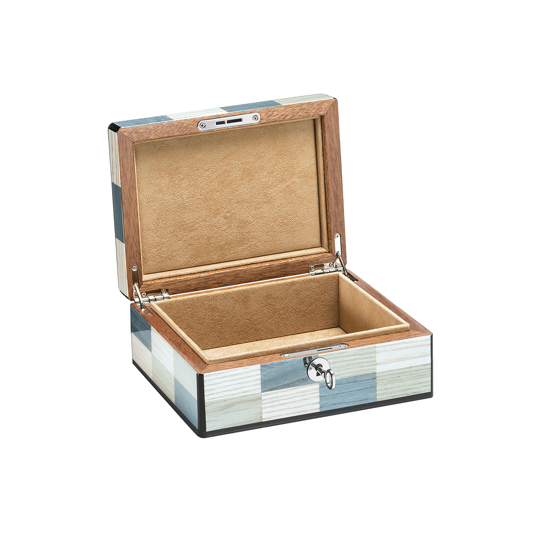 L'esthétisme de ces coffrets " Venezia " fait écho aux légendaires costumes du carnaval de Venise. Une succession de touches de couleurs harmonieusement assemblées, confèrent à ces coffrets un aspect remarquable. Revêtement intérieur en tissu façon alcantara. Emballage: Boîte en carton ondulé avec protections internes.