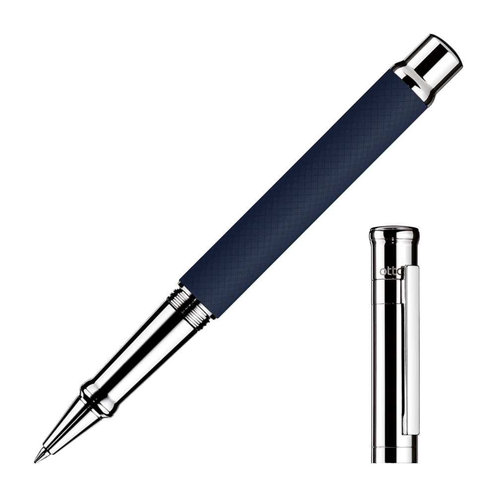 Laissez-vous séduire par le Roller Otto Hutt Design 04, un instrument d’écriture qui incarne l’élégance, la qualité et la précision. Le corps guilloché laqué bleu nuit mat attire immédiatement le regard et offre une prise en main agréable. Le capuchon platiné lisse, sublimé par des attributs platinés, confère à l’ensemble un raffinement unique.