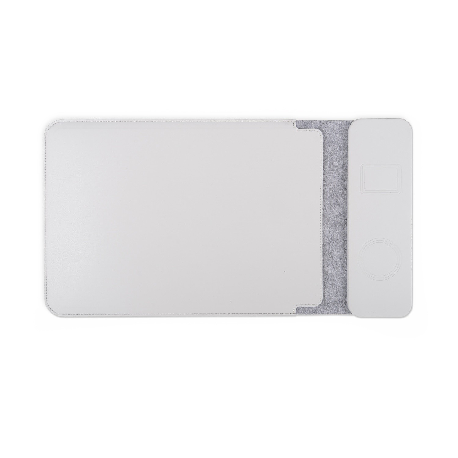 La housse Pininfarina NotePro est une protection élégante et polyvalente pour ordinateur portable avec double chargeur sans fil intégré. Elle sert de housse, de tapis de souris et de sous-main avec surface imperméable et fermeture magnétique, idéale pour un espace de travail mobile et organisé.