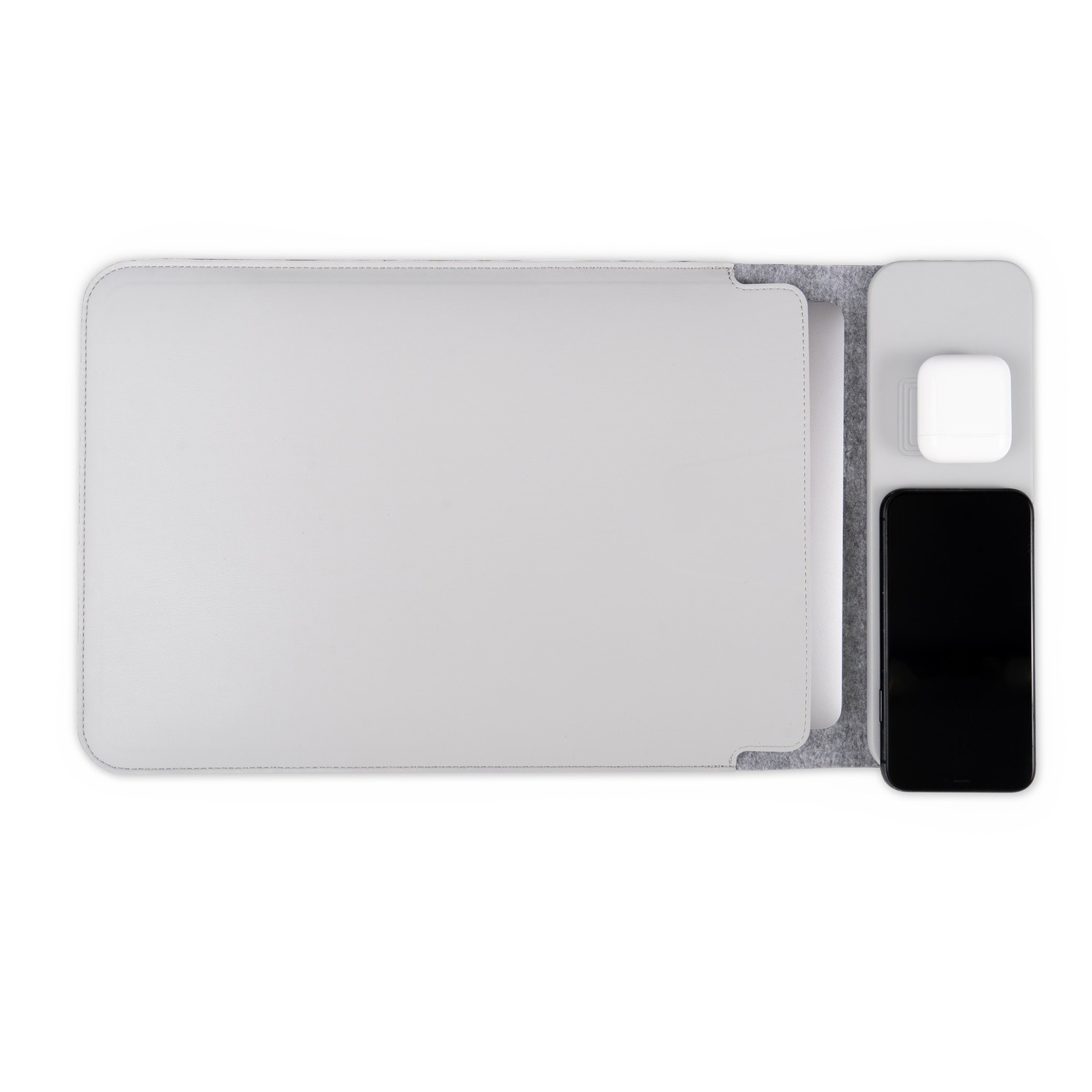 La housse Pininfarina NotePro Gris est une solution de protection et de recharge innovante pour les professionnels en déplacement. Ce produit élégant et polyvalent combine une housse de protection pour ordinateur portable jusqu'à 14 pouces, un double chargeur sans fil rapide (pour smartphone et écouteurs) et un tapis de souris spacieux. Conçue en cuir écologique de haute qualité, elle offre une fermeture magnétique simple pour un accès rapide, ainsi qu’un intérieur matelassé doux pour une protection optimale de l’appareil. La NotePro est équipée d'un port USB-C universel pour une recharge sans fil rapide de 15 W et permet de charger deux appareils en même temps. Avec sa surface imperméable, elle est pratique et élégante pour un usage quotidien, que ce soit au bureau ou en déplacement.