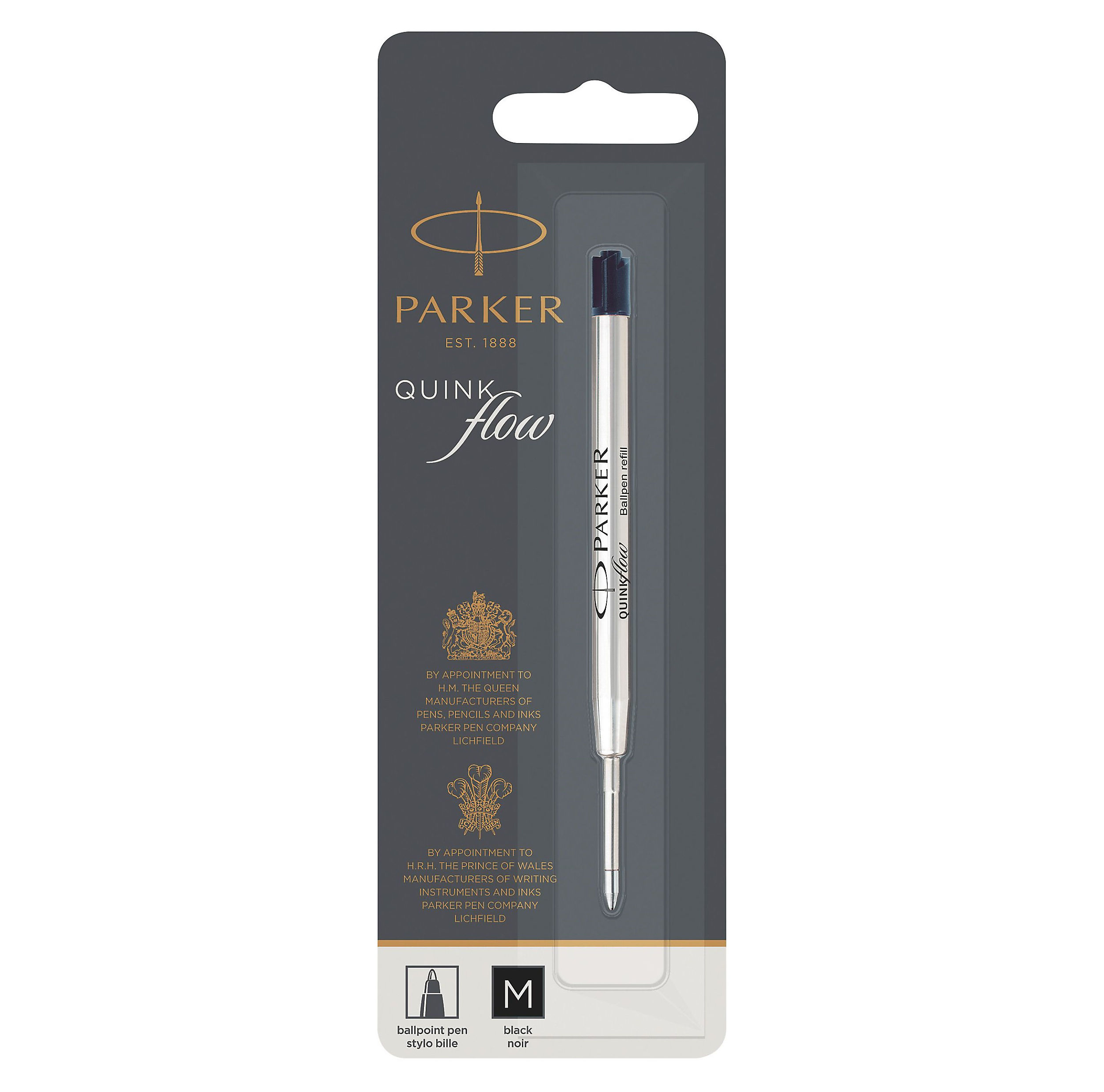 PARKER recharge bille Quinkflow, pointe moyenne, noire, blister X 1 Code Produit : 1950369 Code EAN : 3501179503691