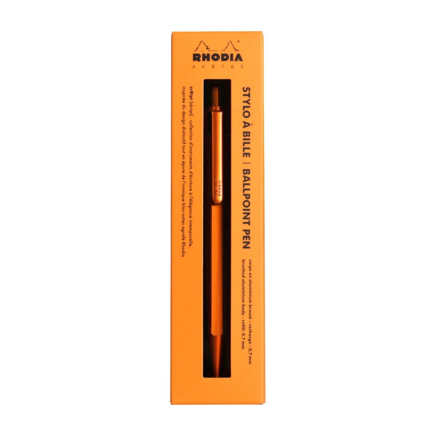 Rhodia scRipt stylo à bille 0,7 mm ORANGE. Pointe rétractable à bille - Haute précision - 0,7 mm. Corps hexagonal en aluminium brossé.