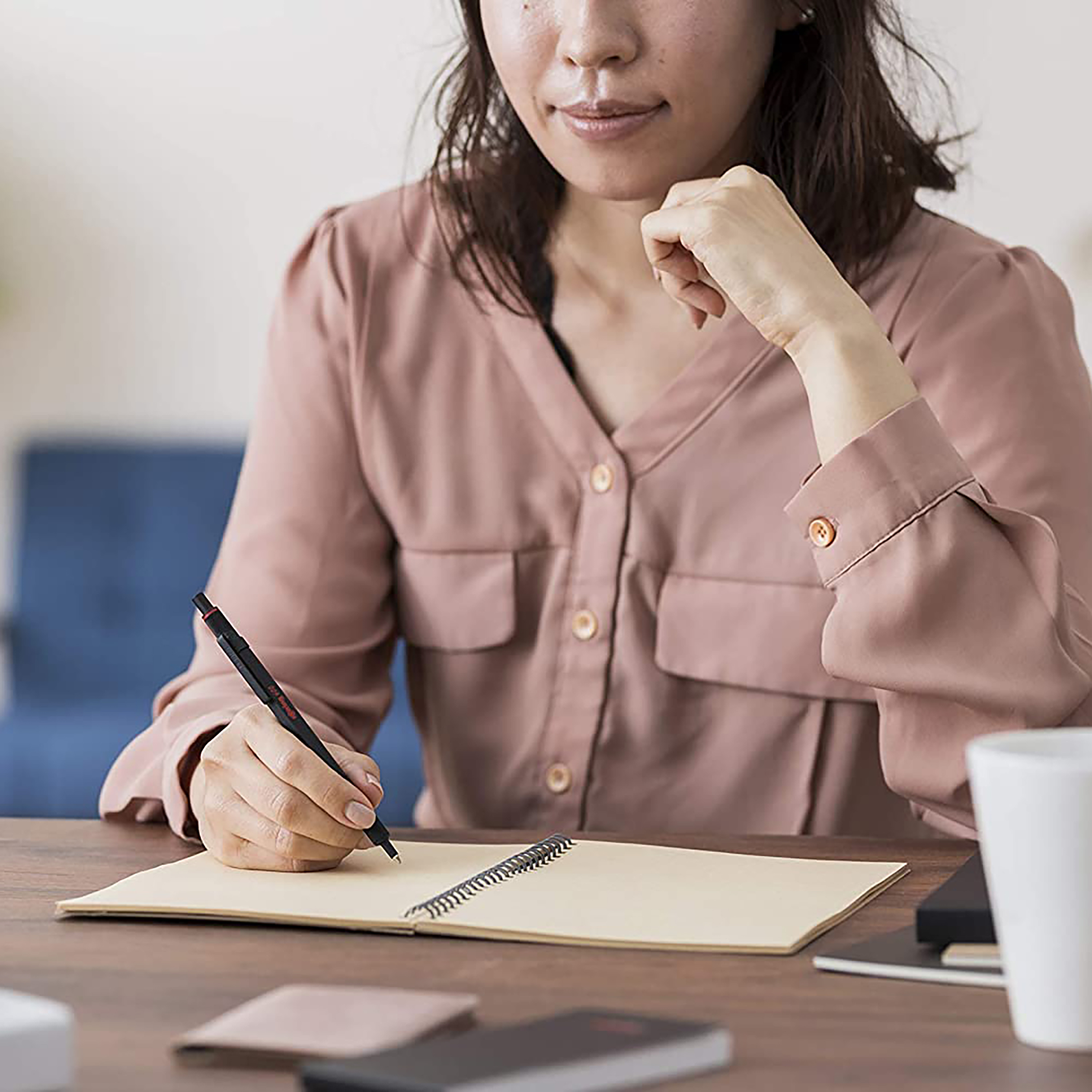 rOtring 600 stylo bille | pointe moyenne | encre noire | corps argenté | rechargeable
