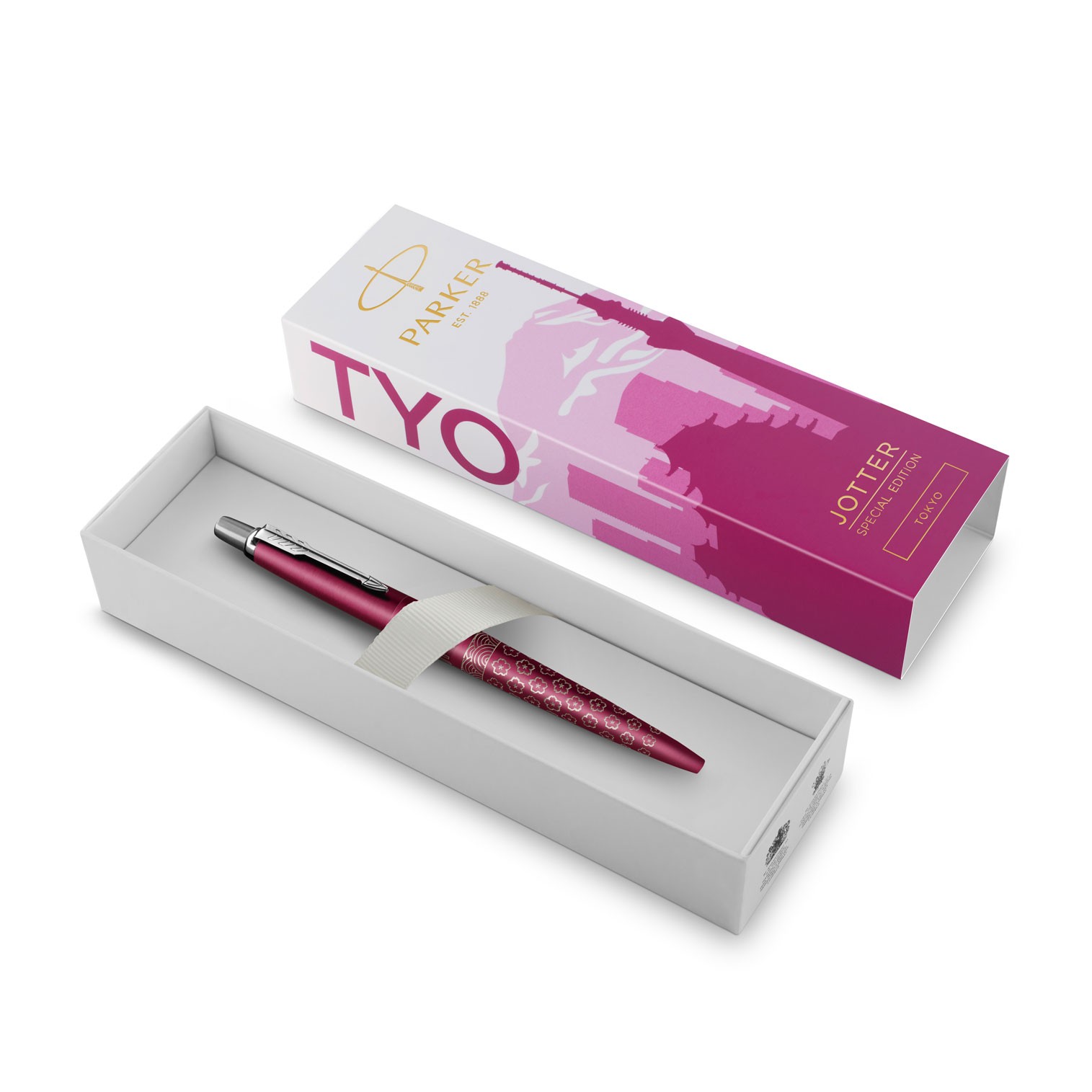 Pour un stylo apprécié dans le monde entier, il est normal que la dernière collection Jotter SE s’inspire des quatre coins du globe. La deuxième édition spéciale « Global Icons » capture le spectacle féerique qui transforme les rues de Tokyo chaque printemps. Son motif enchanteur représente des milliers de cerisiers en fleurs qui colorent la ville de nuances de rose. Expression du savoir-faire inimitable de PARKER, le motif est magnifiquement gravé au laser sur le corps de l’instrument d’écriture. La finition laquée offre une expérience d’écriture confortable et la couleur rose satiné évoque la merveilleuse histoire de la ville. Pour ceux dont le regard est tourné vers le monde, le stylo bille Jotter SE Tokyo apportera de la couleur et de l’inspiration à de futurs voyages.