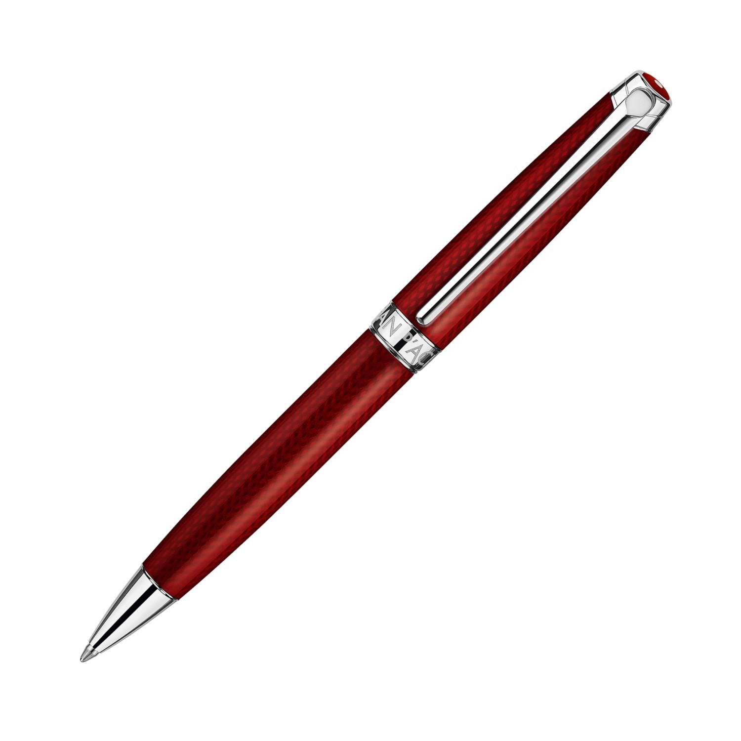Bouton doté de l’identification Caran d’Ache (hexagone laqué rouge carmin)