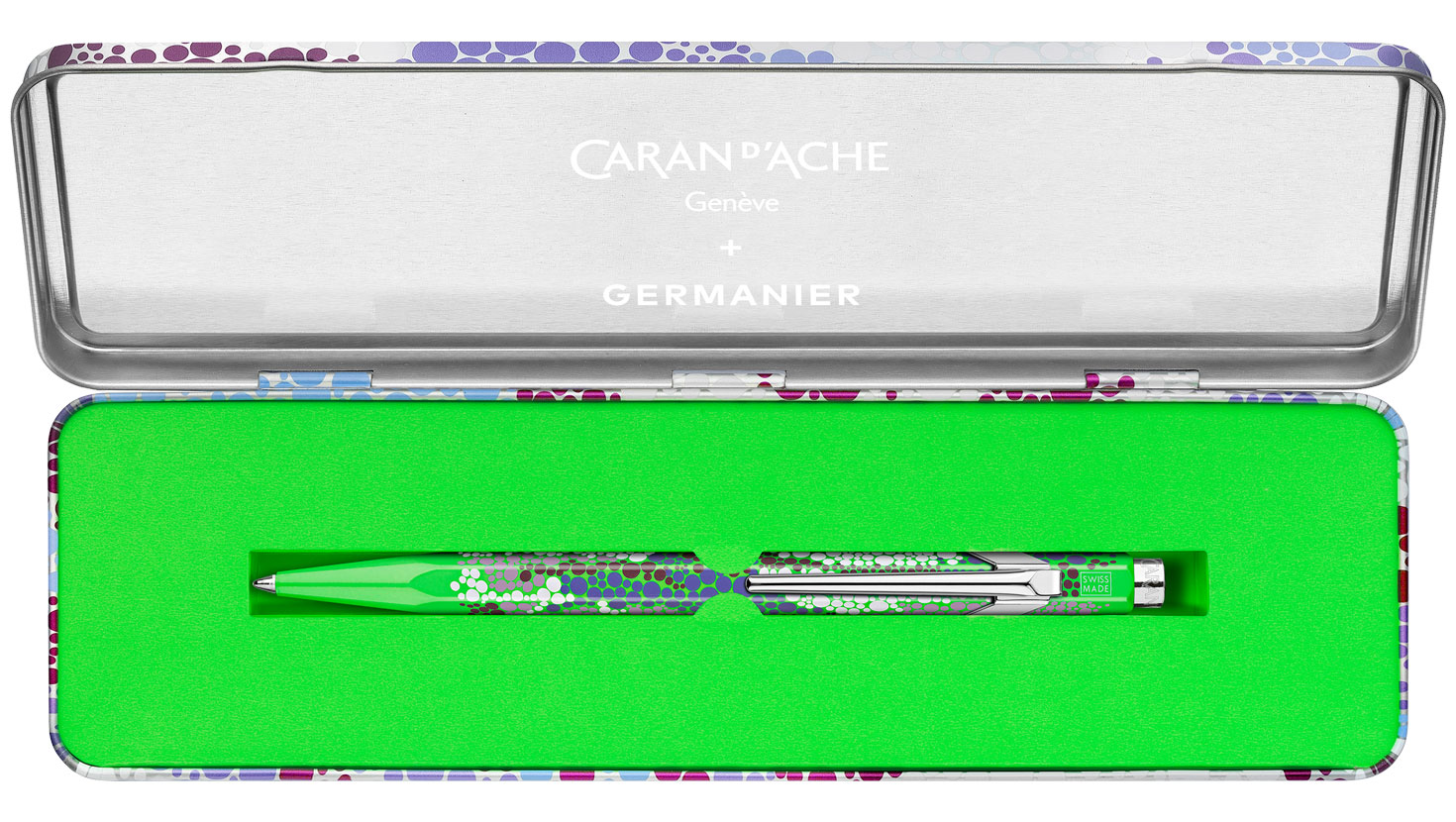 Le Stylo-bille 849™ CARAN D’ACHE x GERMANIER Vert fait partie de la collection Les Fulgureuses, une collaboration inédite entre la Maison suisse et le designer Kévin Germanier, reconnu pour ses créations audacieuses et son engagement envers la durabilité.