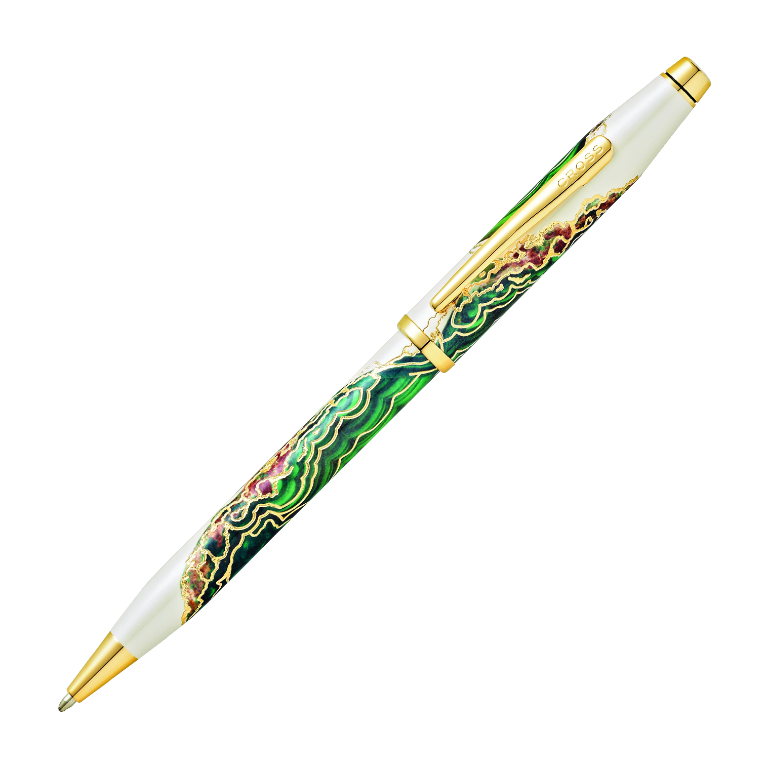 Le Stylo Bille Cross Wanderlust Vert Borneo marie élégance botanique et sophistication dorée. Sa laque nacrée ornée de vert vibrant offre une allure unique. Un stylo raffiné, fluide et livré dans un écrin cadeau.