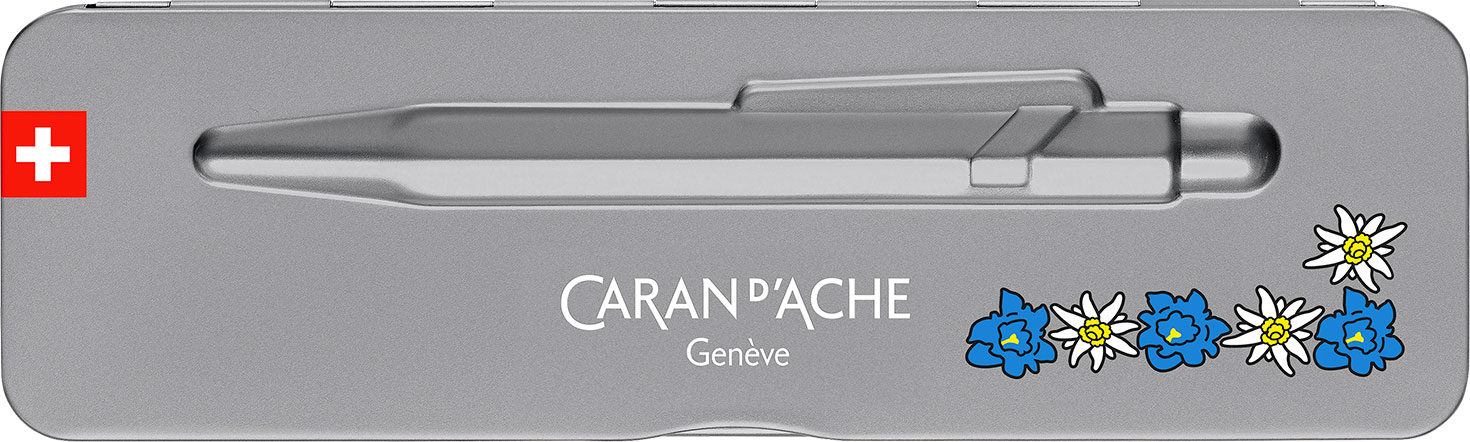 Le Stylo Bille 849 Caran d'Ache Edelweiss de la collection Totally Swiss est un véritable objet culte, inspiré par la culture helvétique et orné de fleurs Edelweiss, emblématiques des Alpes suisses. Son corps hexagonal en aluminium est à la fois léger et résistant, tandis que son fini noir mat et les motifs délicats des fleurs des Alpes en font un véritable hommage à la nature suisse. Ce stylo allie élégance et fonctionnalité, offrant une prise en main optimale grâce à son design ergonomique.