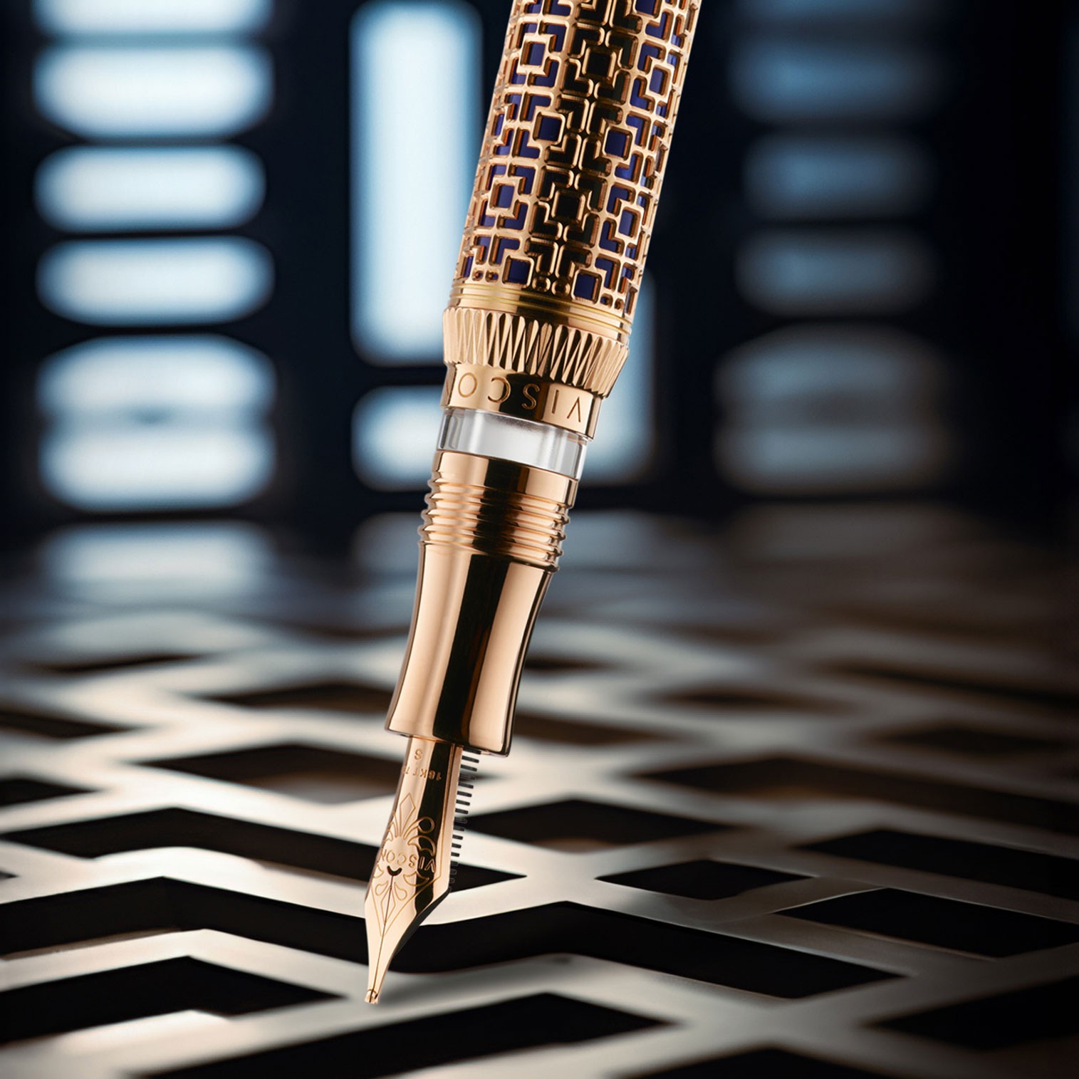Plus qu'un simple outil d'écriture, la collection Looking East témoigne du riche héritage du design asiatique et du lien profond entre l'architecture, l'identité et l'artisanat. Disponible en 188 exemplaires dans le monde entier. La collection Looking East présente un design captivant, avec son filigrane qui orne le corps du stylo dans un fascinant motif quadrillé répété. La plume plaquée or 18 carats, réalisée par les artisans de Visconti, s'harmonise parfaitement avec le design de ce prestigieux instrument d'écriture : un précieux filigrane d'argent sterling recouvert d'un brillant plaquage or rose. Fabriqué à la main par des artisans italiens, chaque carré filigrané qui recouvre ce précieux stylo roller est finement gravé à partir d'un cylindre d'argent ensuite recouvert d'un élégant or rose. Cette Collection représente l'hommage de Visconti à la culture asiatique séculaire et au lien profond entre l'architecture, l'identité et l'artisanat.