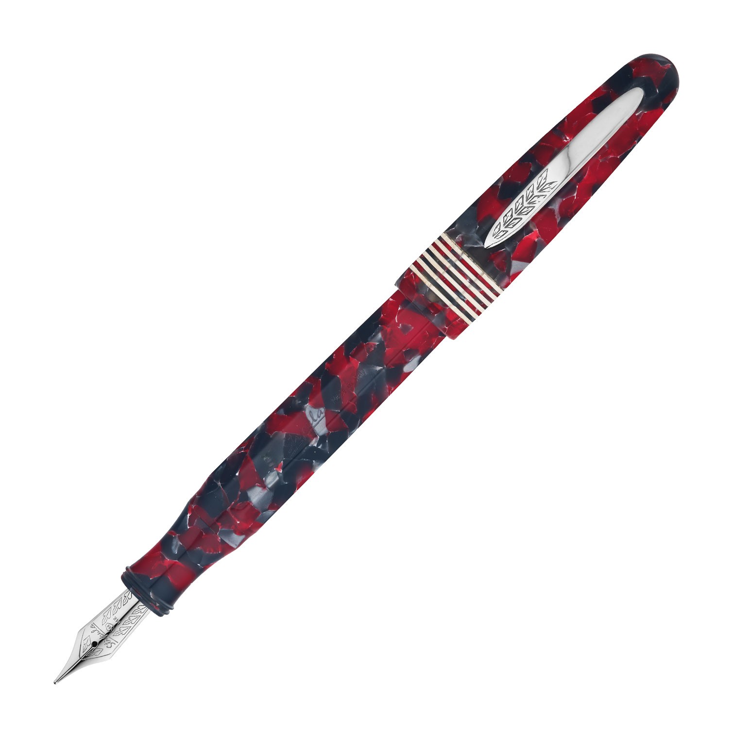 Le Stipula Etruria Facettata Grande Rossa en plume calligraphique 0.9 mm permet un tracé fin et artistique, idéal pour la calligraphie élégante et les lettres détaillées. Son corps en résine facettée rouge et gris, avec six bagues fines au capuchon et des attributs palladiés brillants, allie esthétisme et confort. Remplissage piston haute capacité pour une écriture fluide et prolongée.