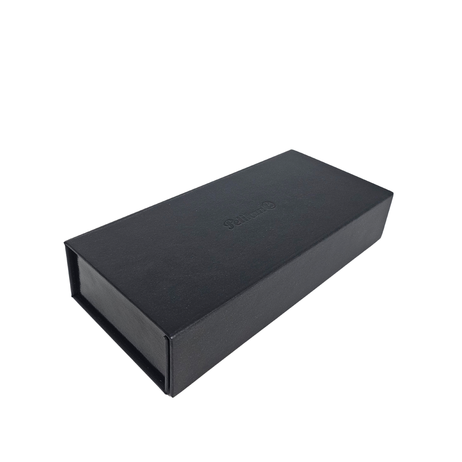 Le Pelikan Souverän® M809 Black Matt plume F est l’incarnation du luxe discret et de la sophistication. Entièrement noir mat, il dégage une puissance visuelle sans compromis. Le corps en résine précieuse est subtilement associé au métal satiné, offrant un contraste élégant et contemporain. La plume en or 18 carats finition noire assure un tracé fin, précis et fluide, parfait pour ceux qui aiment l’écriture délicate et raffinée.