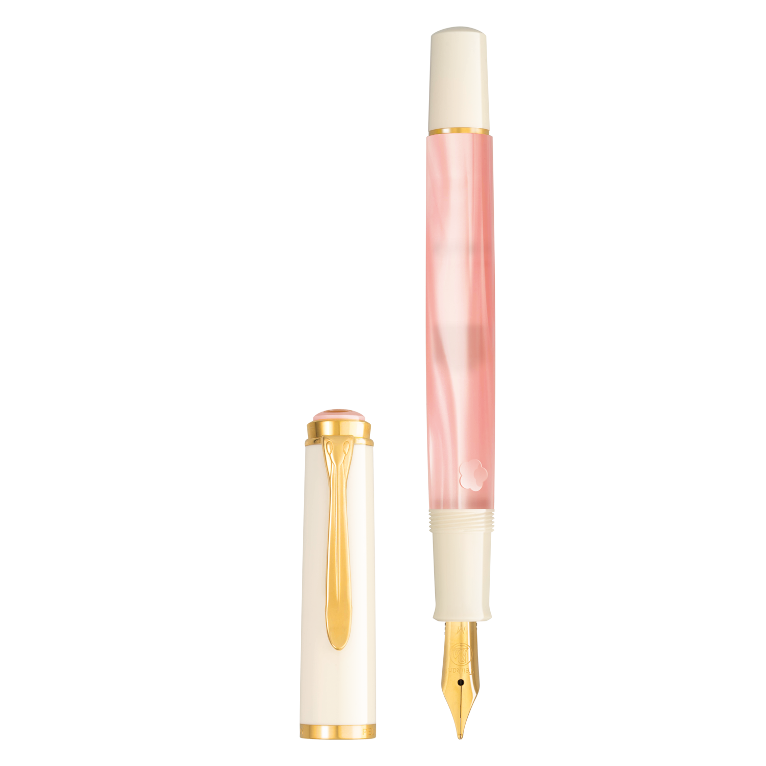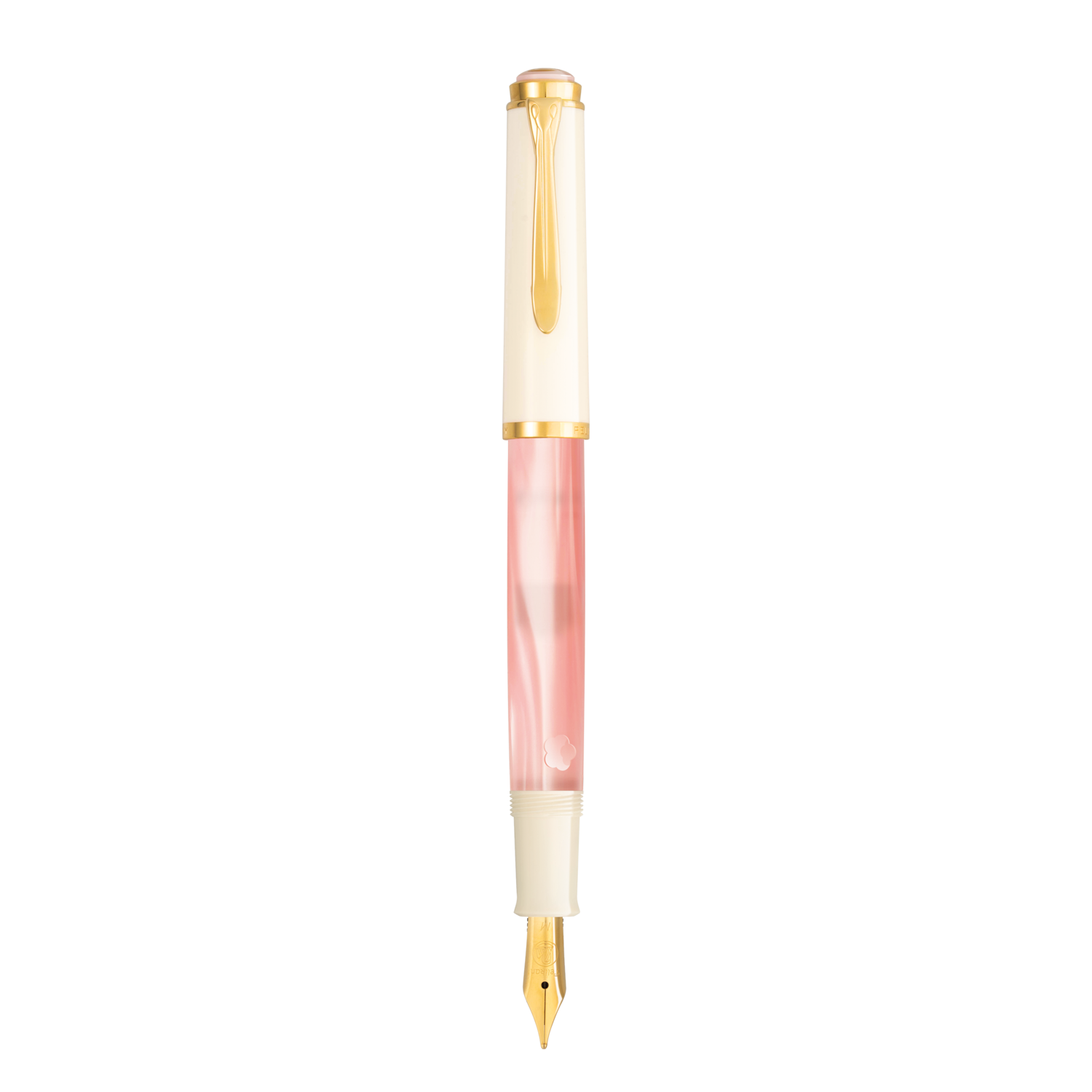 Le capuchon blanc immaculé, associé au clip et aux anneaux plaqués or, complète ce stylo avec élégance. Le contraste entre le rose délicat, le blanc pur et les accents dorés évoque la pureté et la lumière de la saison des cerisiers en fleurs.