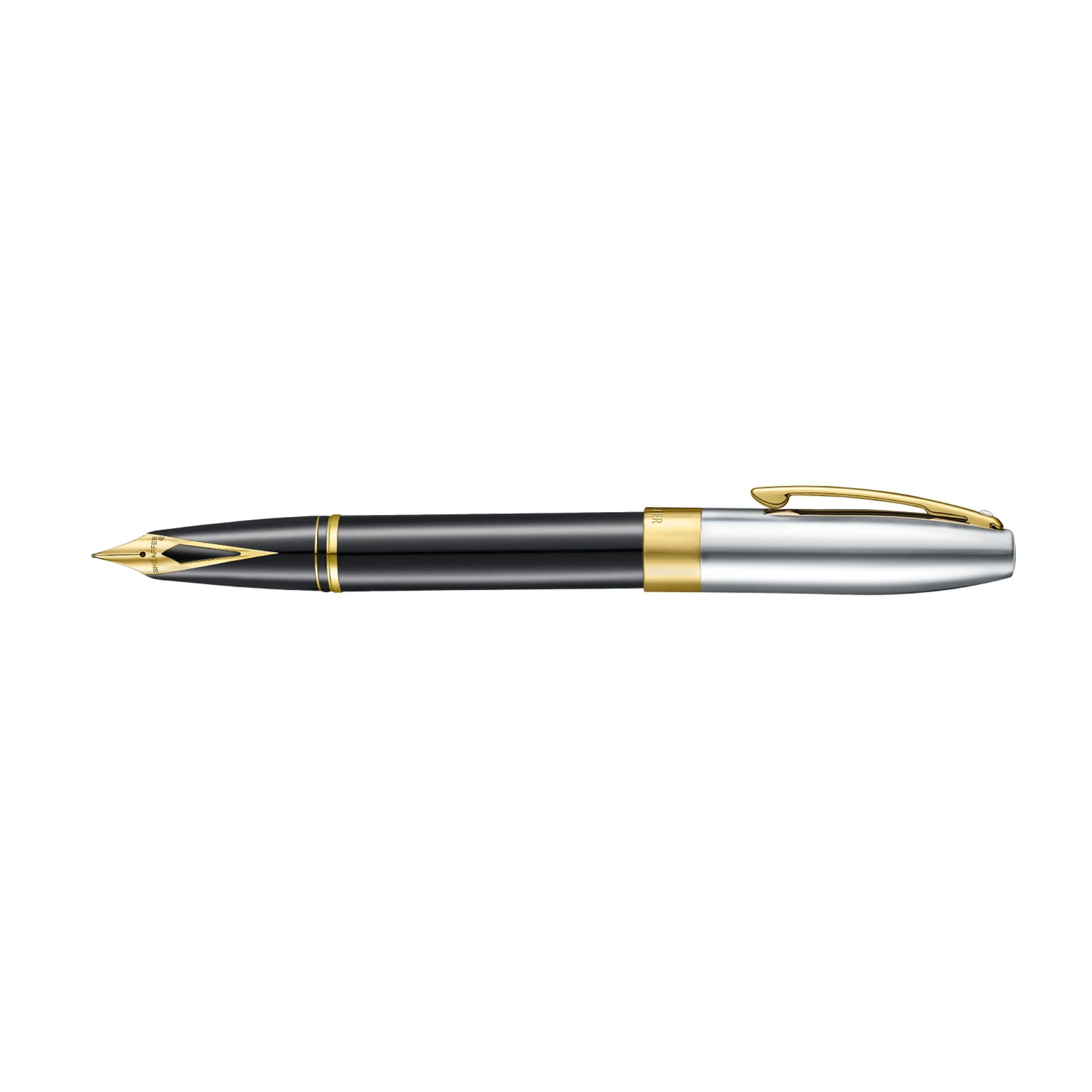 Signature emblématique de cette collection, la plume incrustée en acier inoxydable plaqué or 14K PVD reprend le célèbre design intégré développé par Sheaffer, symbole historique d’innovation technique et esthétique. Son marquage personnalisé renforce encore le caractère exclusif du modèle.