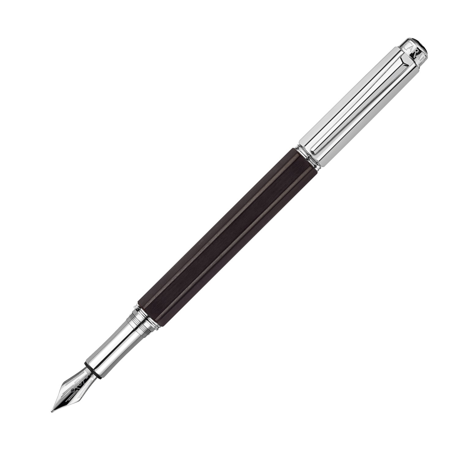 Le stylo plume Varius Ebony de Caran d’Ache sublime l’alliance entre le bois d’ébène noble et les finitions argentées rhodiées. Son bec de plume (M) en or 18 carats rhodié, poli à la main, garantit une expérience d’écriture fluide et luxueuse. Disponible en sept largeurs de plume, il répond aux attentes des passionnés d’écriture les plus exigeants.