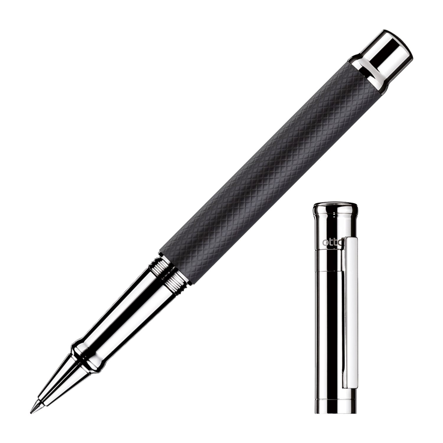 Découvrez l’excellence avec le stylo roller Otto Hutt Design 04, qui conjugue design raffiné et savoir-faire artisanal allemand. Son corps guilloché laqué noir mat offre une prise en main confortable et un toucher sophistiqué, tandis que le capuchon platiné lisse et les attributs platinés apportent une touche éclatante et élégante.