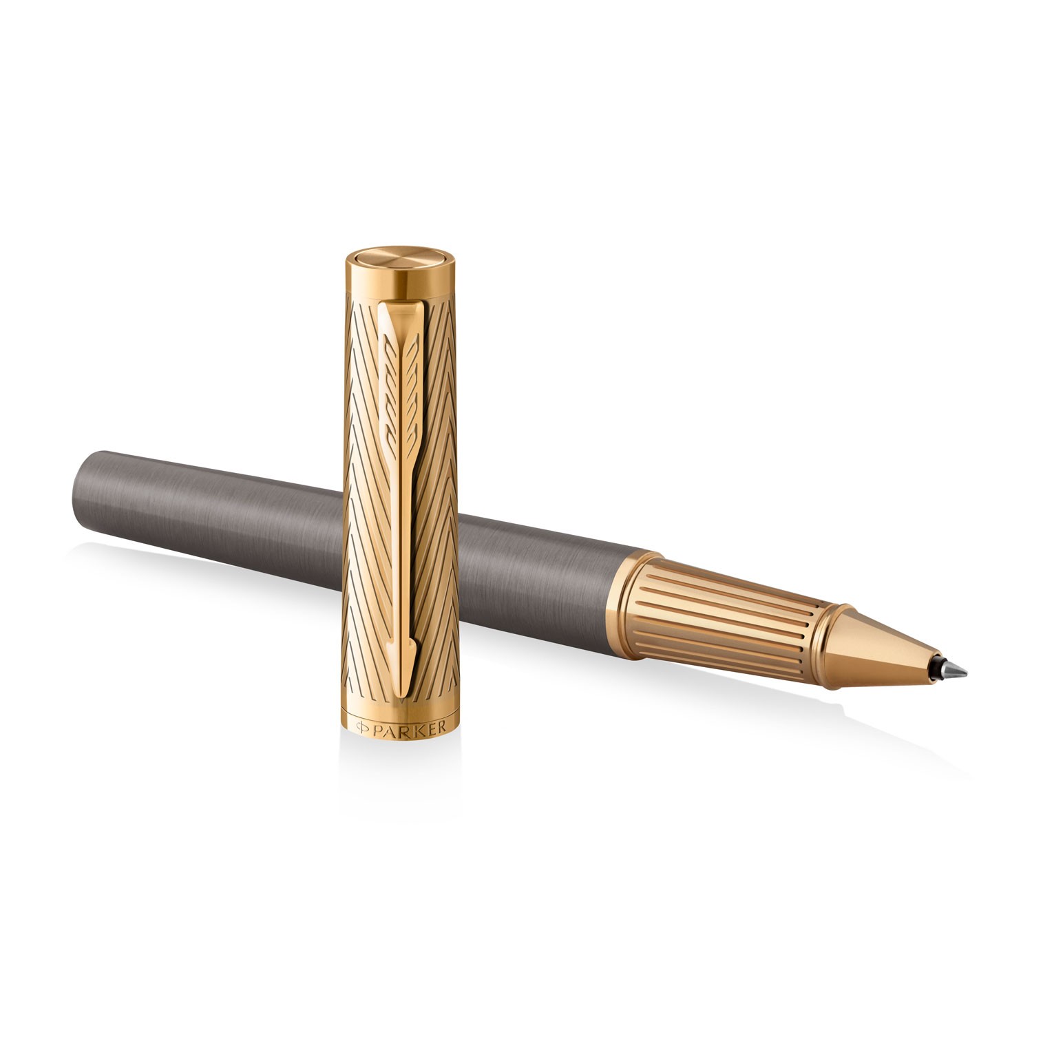 Parker® Ingenuity Arrow GT | stylo roller F | Attributs Dorés | Design contemporain | Corps large | Pointe Fine | Recharge Noire | Livré en Coffret Cadeau