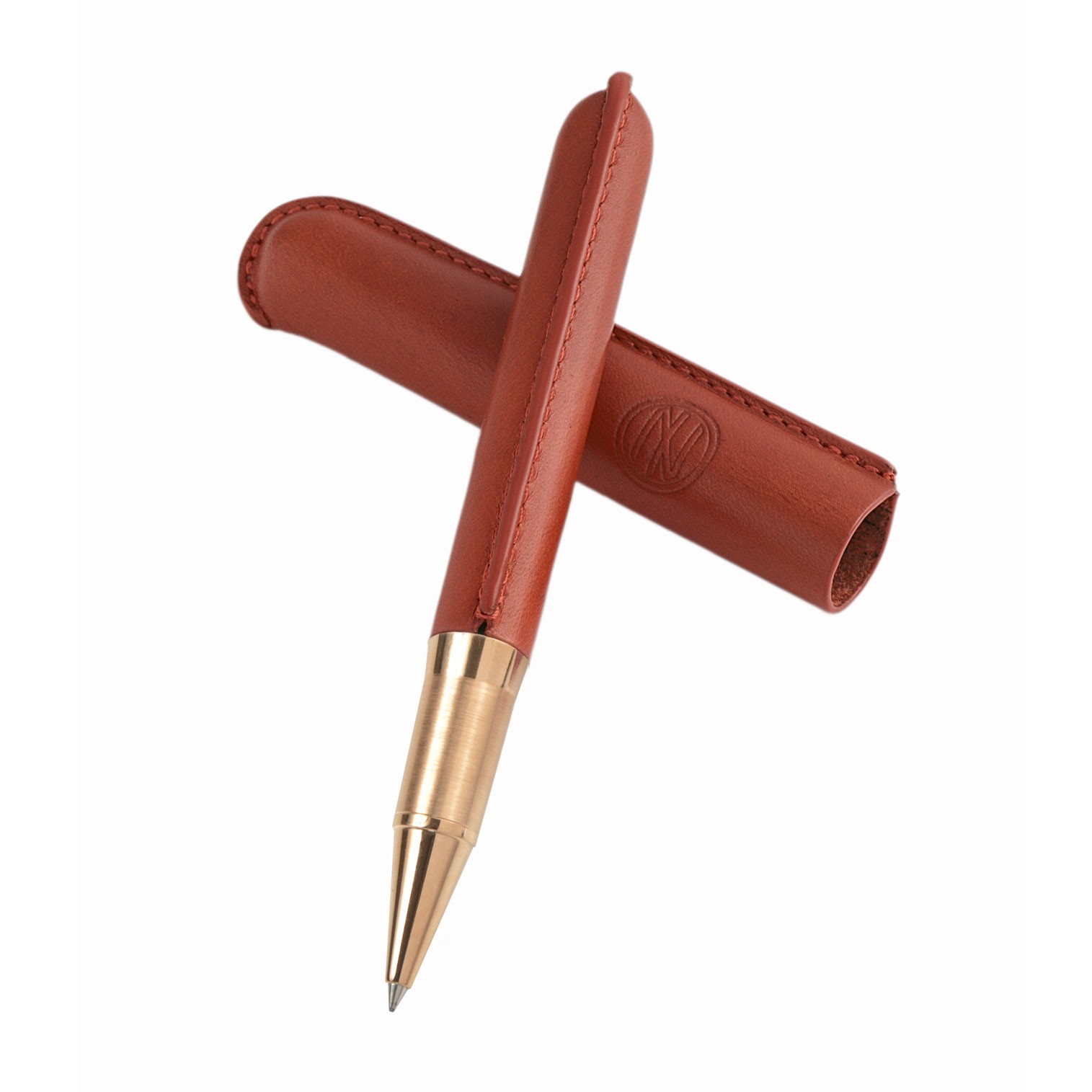 Stylo Roller "Cocoon" JAN ZANDER Design Cuir Rouge Plaqué or rose