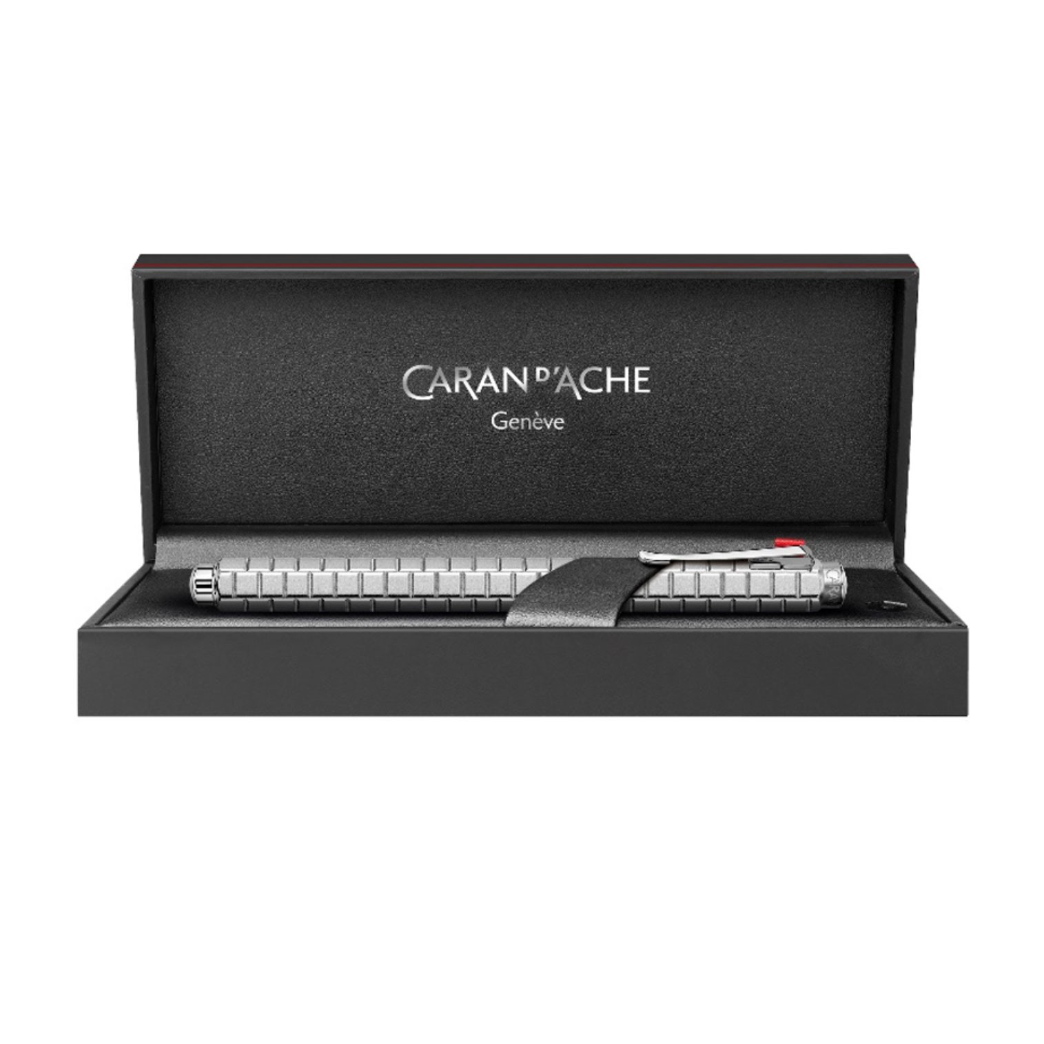 Packaging Élégant : Le stylo est présenté dans un écrin standard noir de 18,4 x 8 x 4 cm, reflétant l'engagement de Caran d'Ache envers l'excellence et le détail